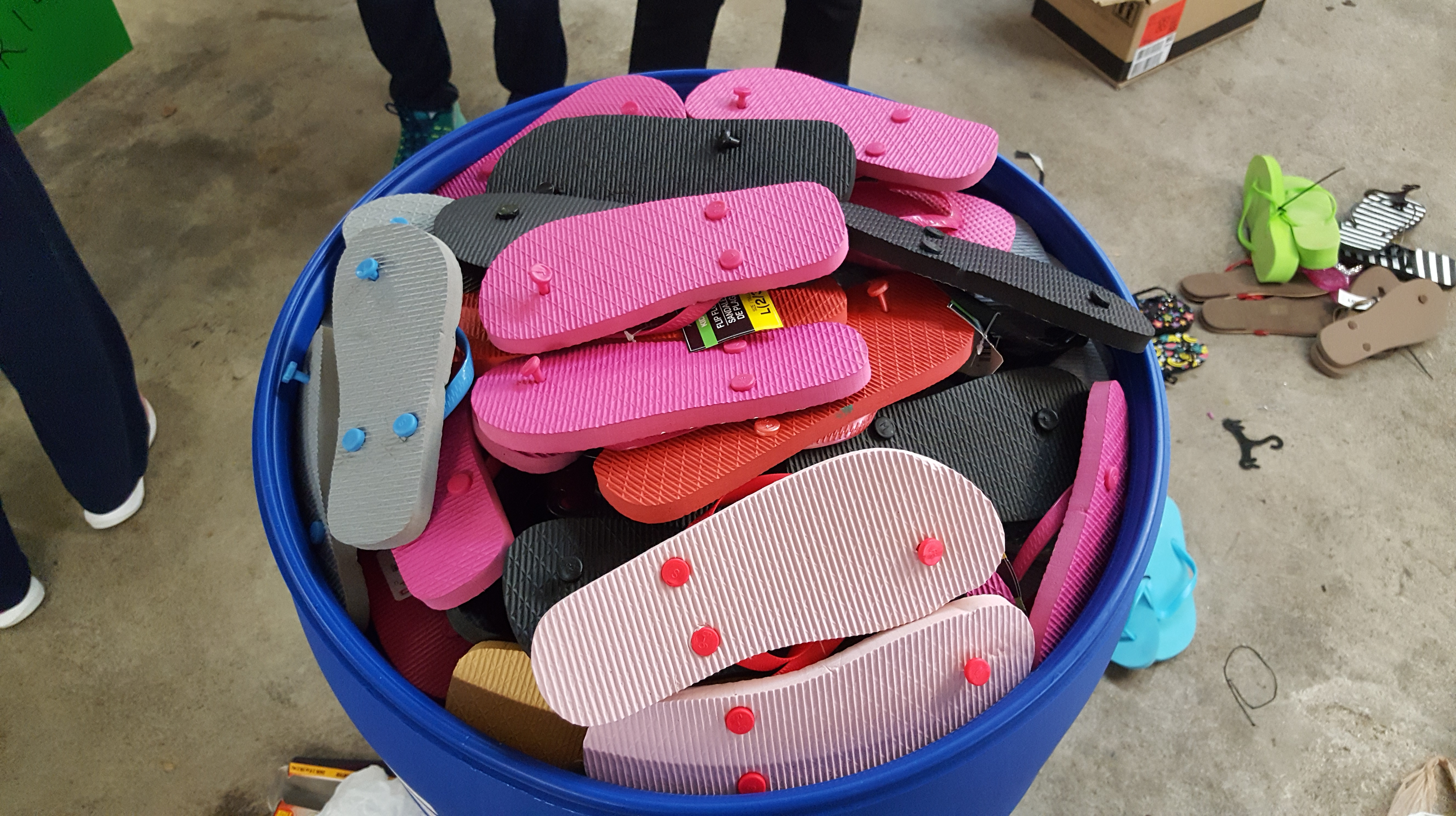 A barrel full of flip flops from Mt Pisgah, Raeford, NC