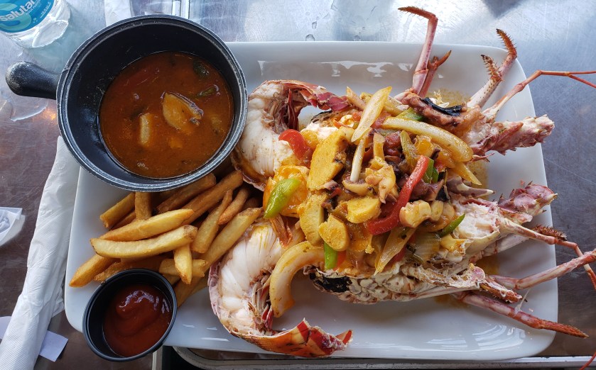 This 2 lb was topped with seafood.